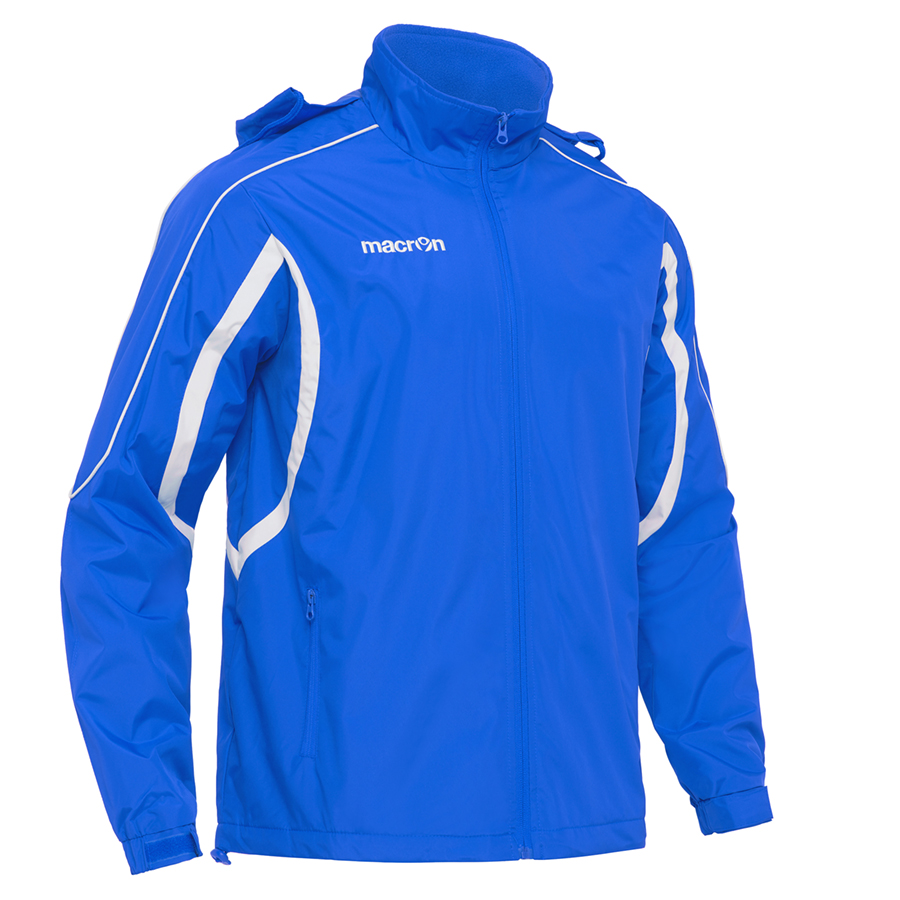 Przeciwdeszczowa kurtka z polarową podszewką Macron Kobe, wyposażona w kaptur ukryty w kołnierzu, troczki ściągające, wewnętrzną kieszeń w podszewce do personalizacji.